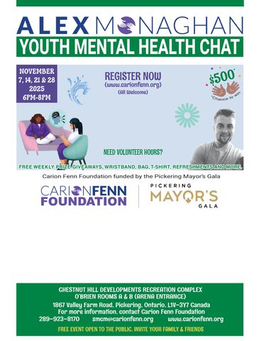 In recognition of Alex Monaghan Mental Health Month. Funded by the Pickering Mayors Gala.