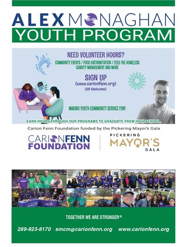 Alex Monaghan Youth Program empowers young people to work together, support one another and gain valuable experience of community involvement hours required to graduate high school. Funded by the Pickering Mayor’s Gala.